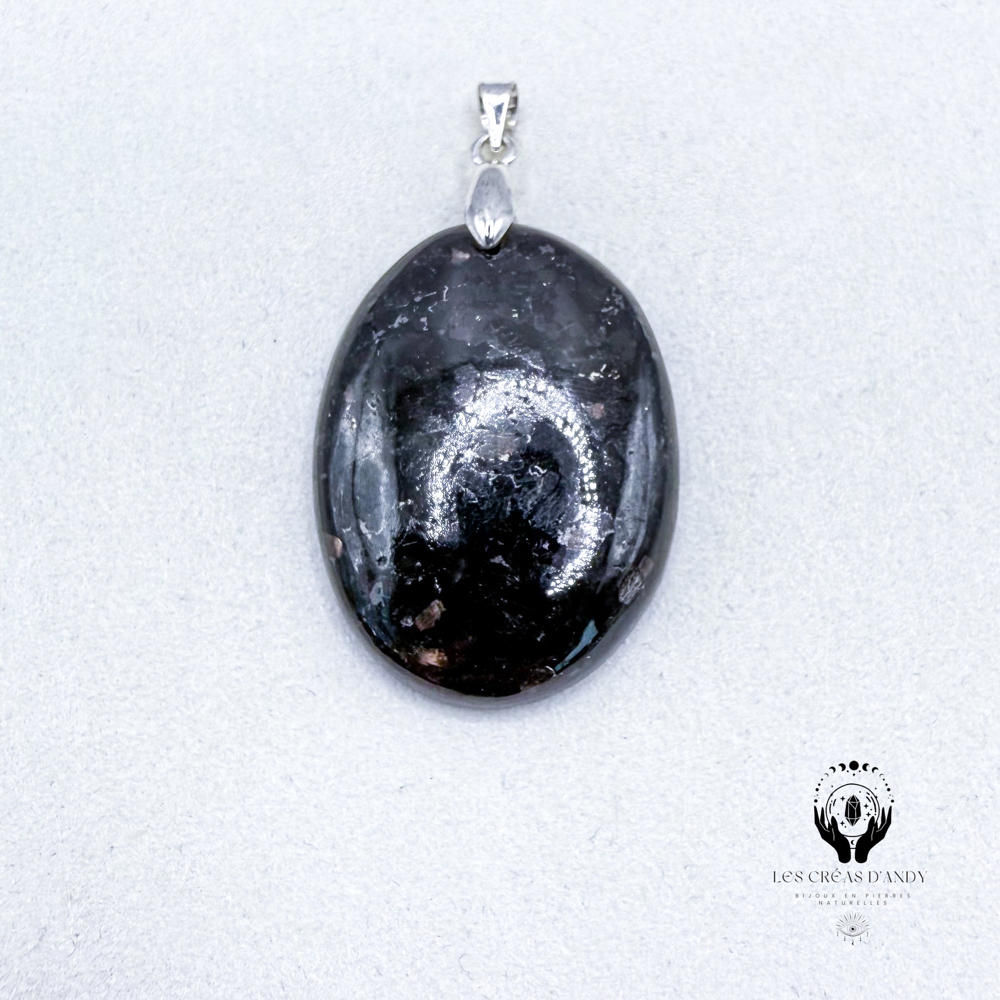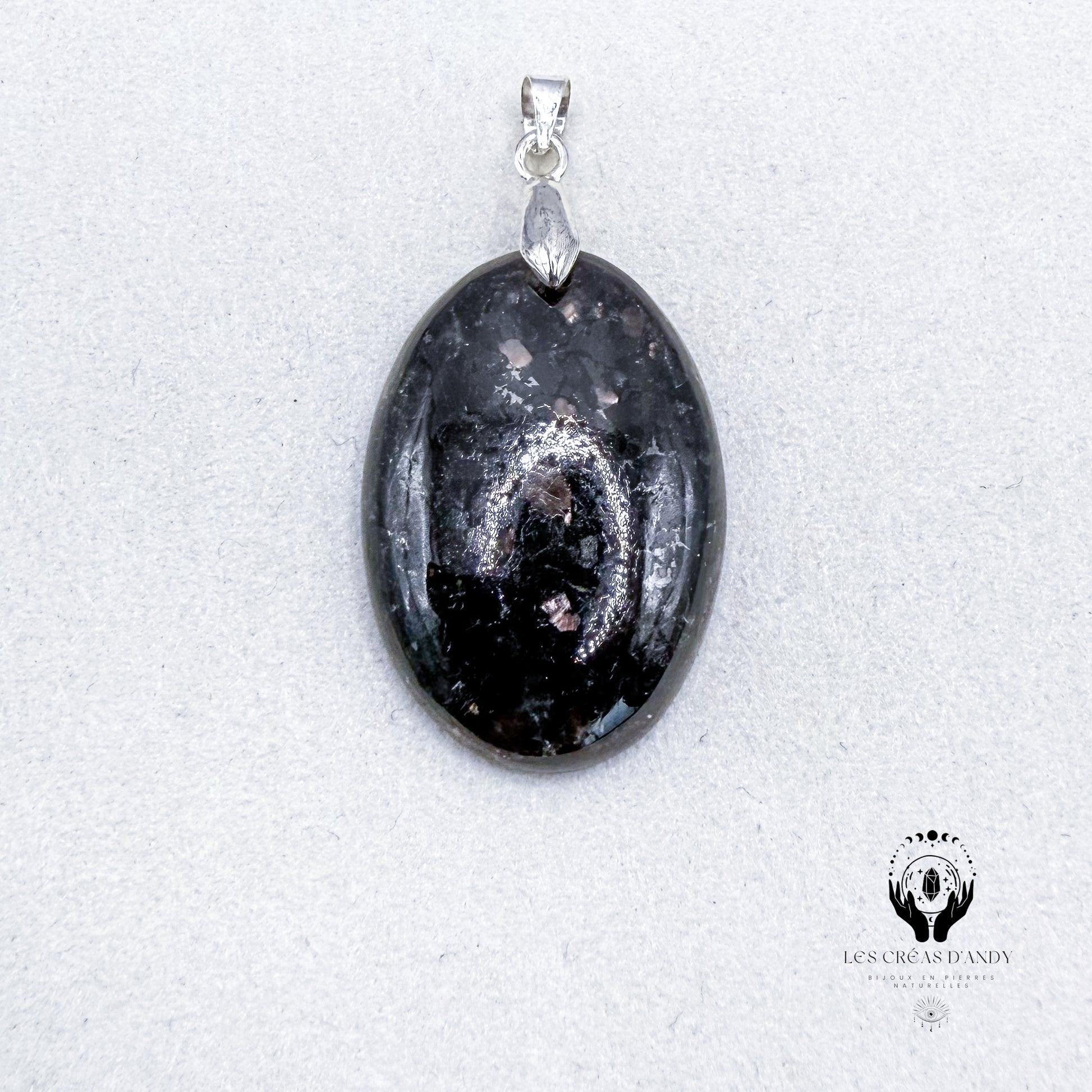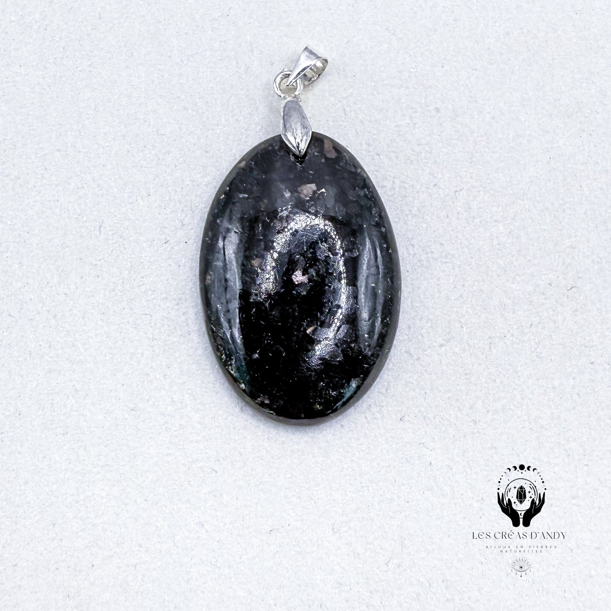 Pendentifs en pierres naturelles Nuummite et bélière acier inoxydable.