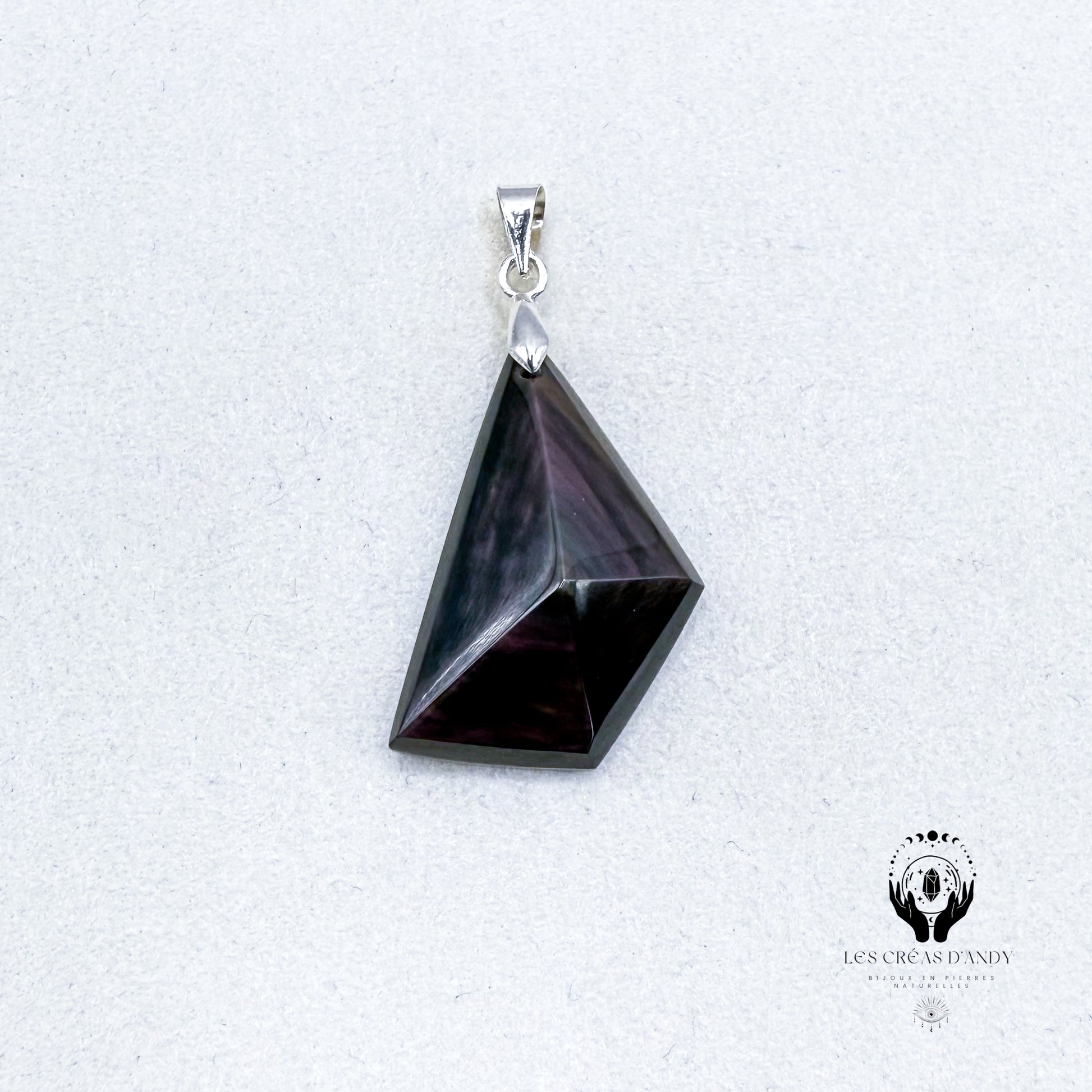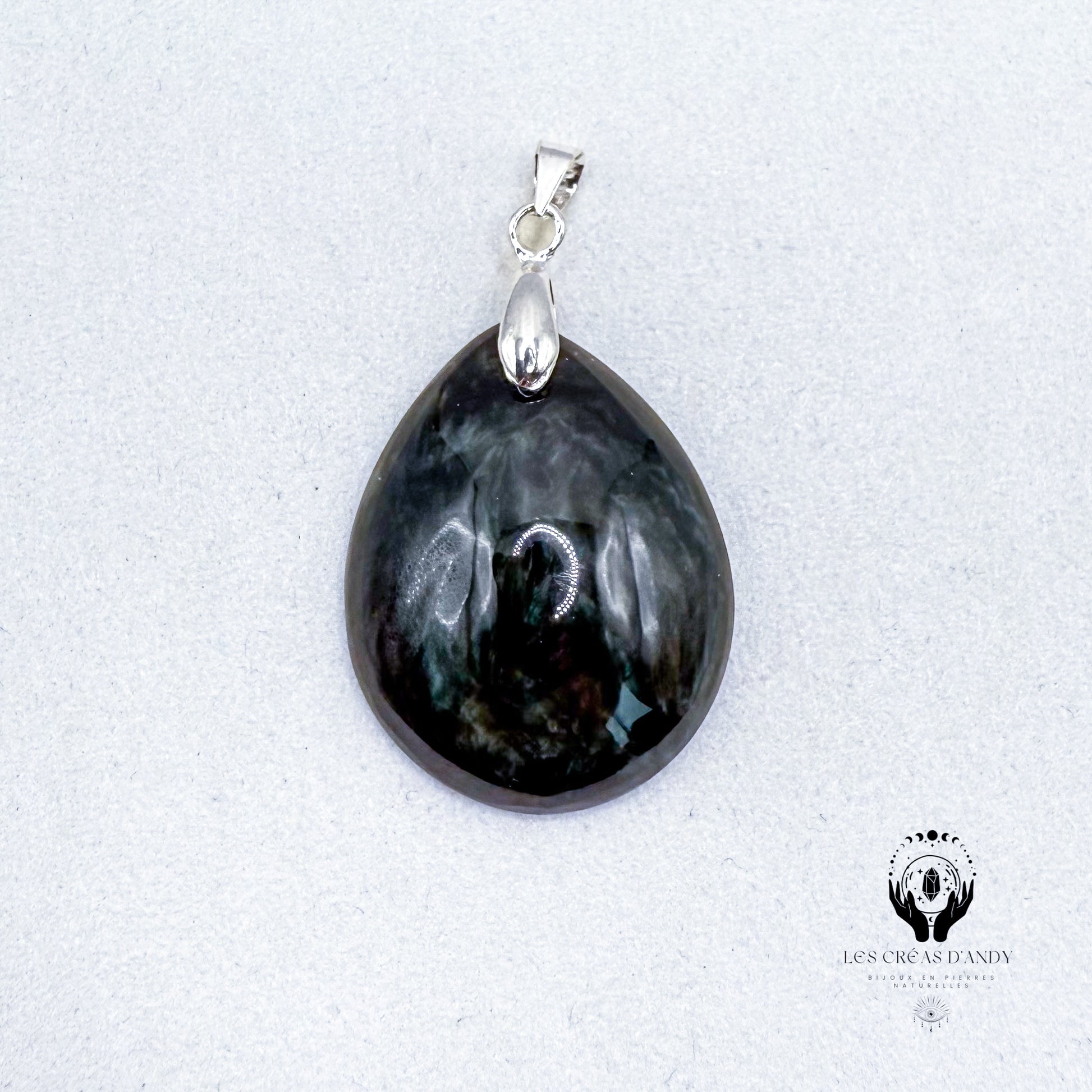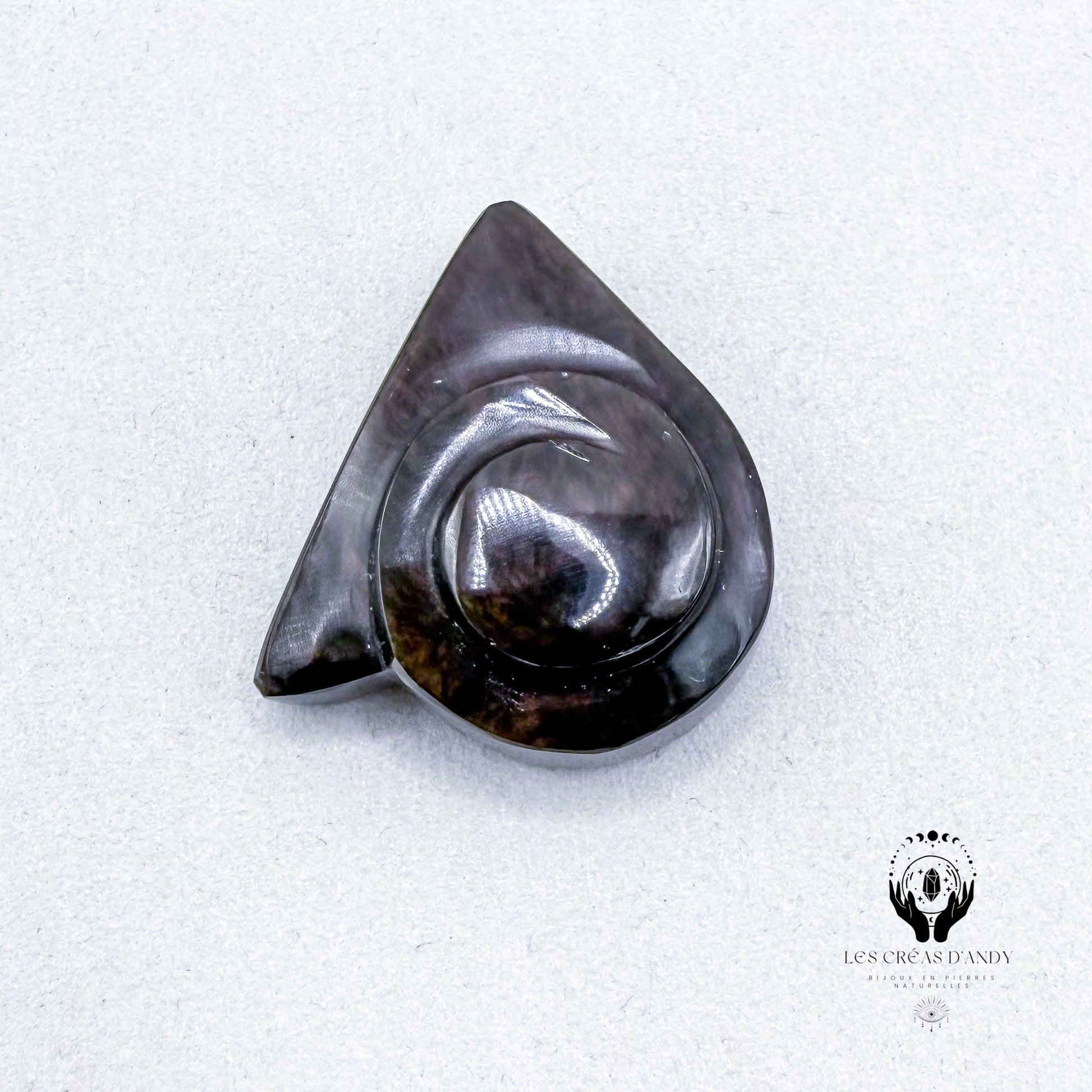 Pendentifs en pierres naturelles Obsidienne Manta huichol et bélière acier inoxydable.