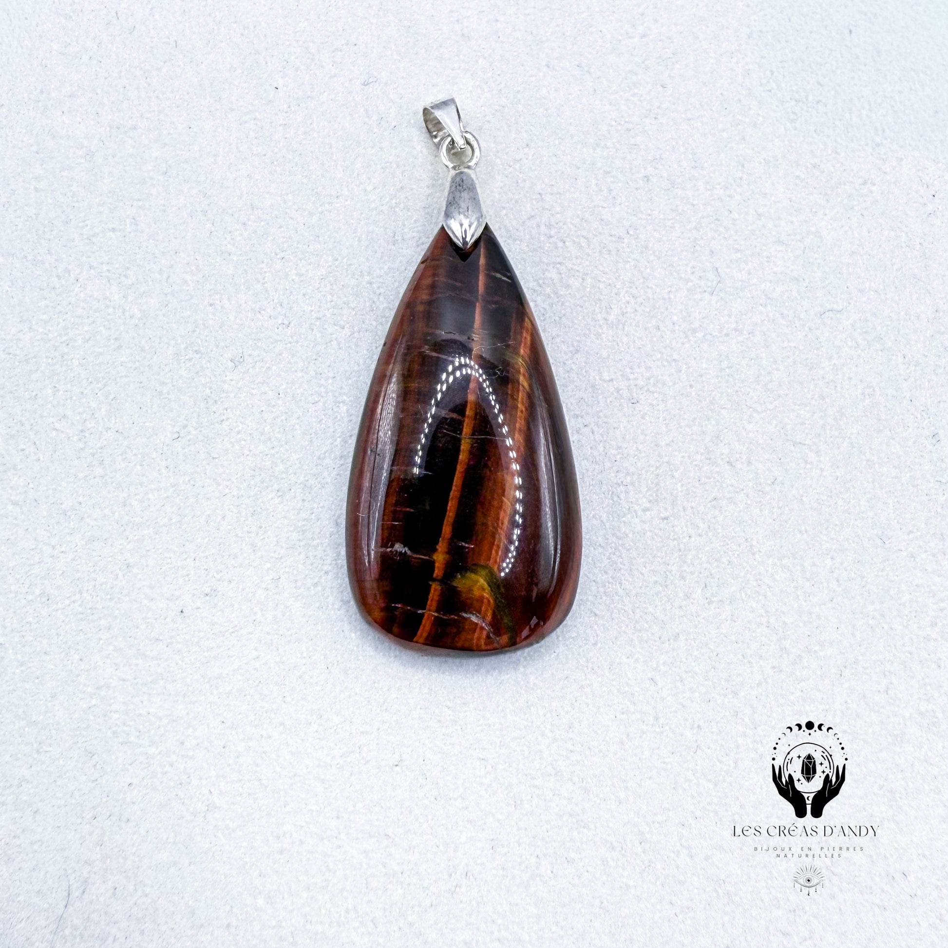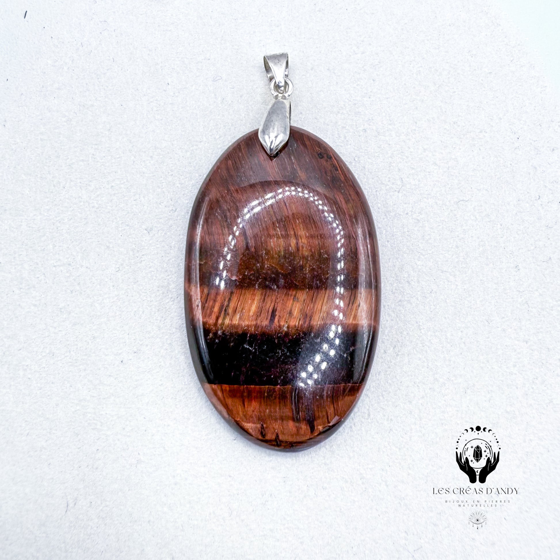Pendentifs en pierres naturelles Œil de taureau et bélière acier inoxydable.