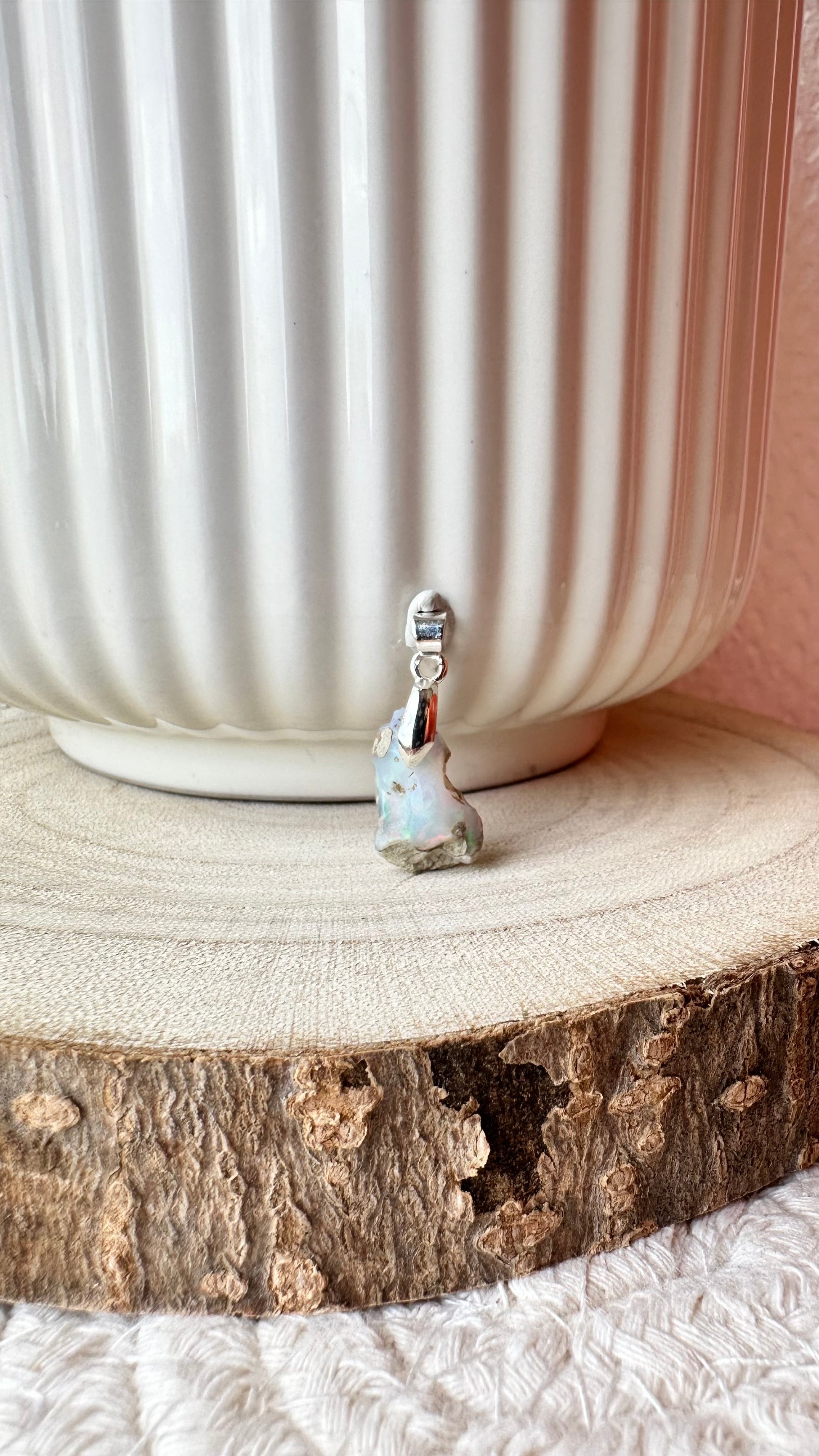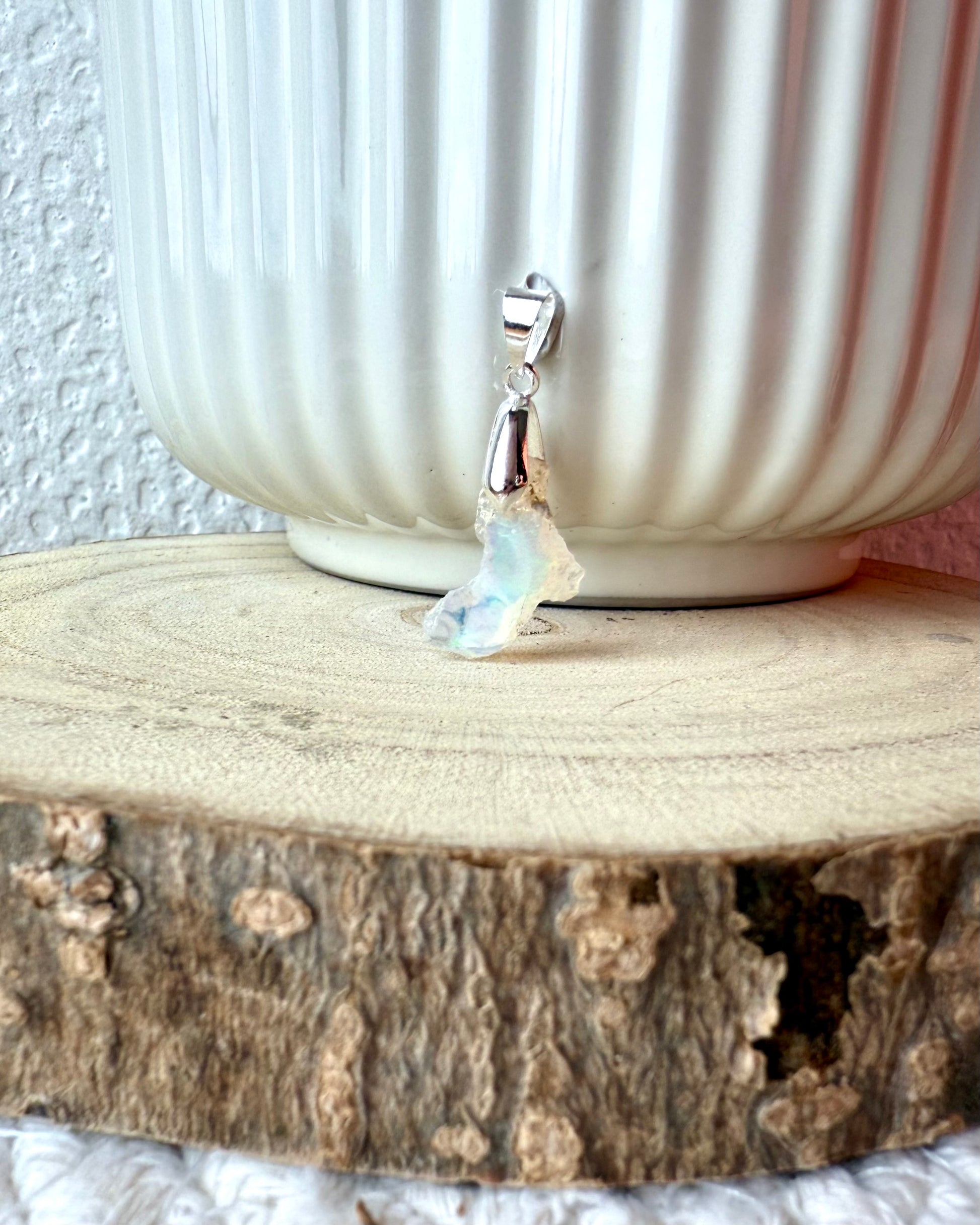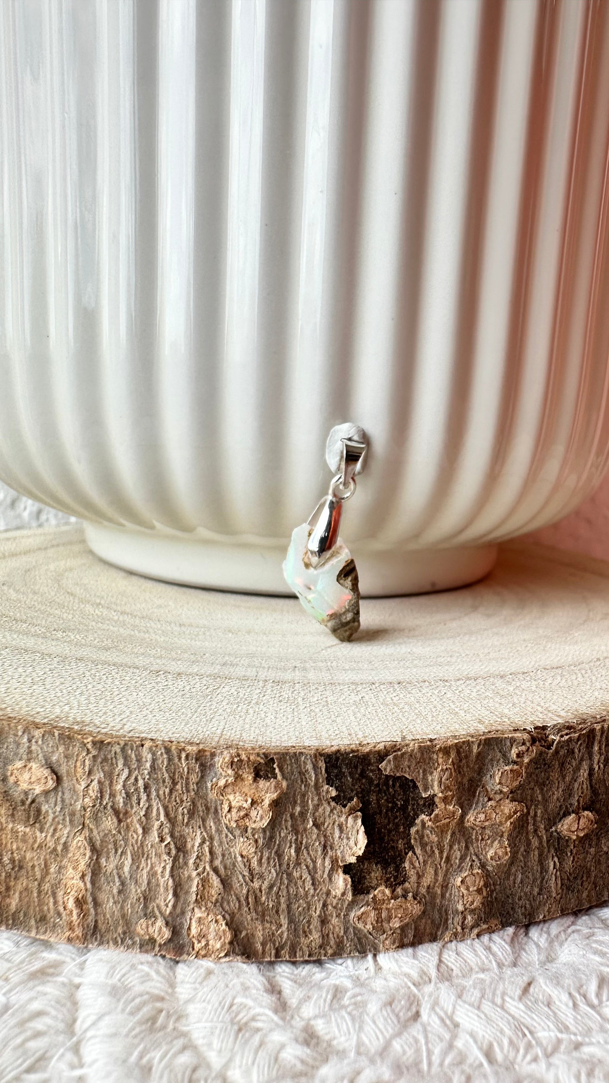 Pendentifs en pierres naturelles Opale welo brute et bélière acier inoxydable.