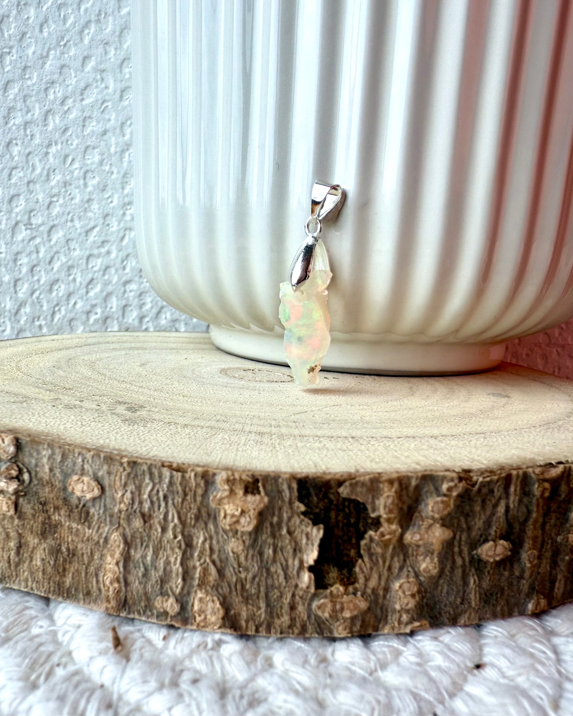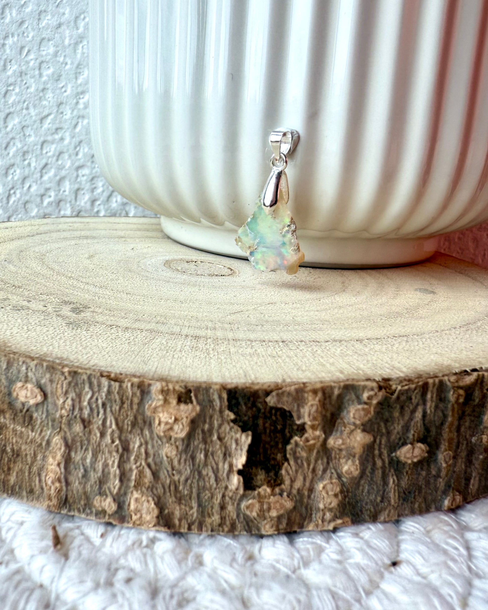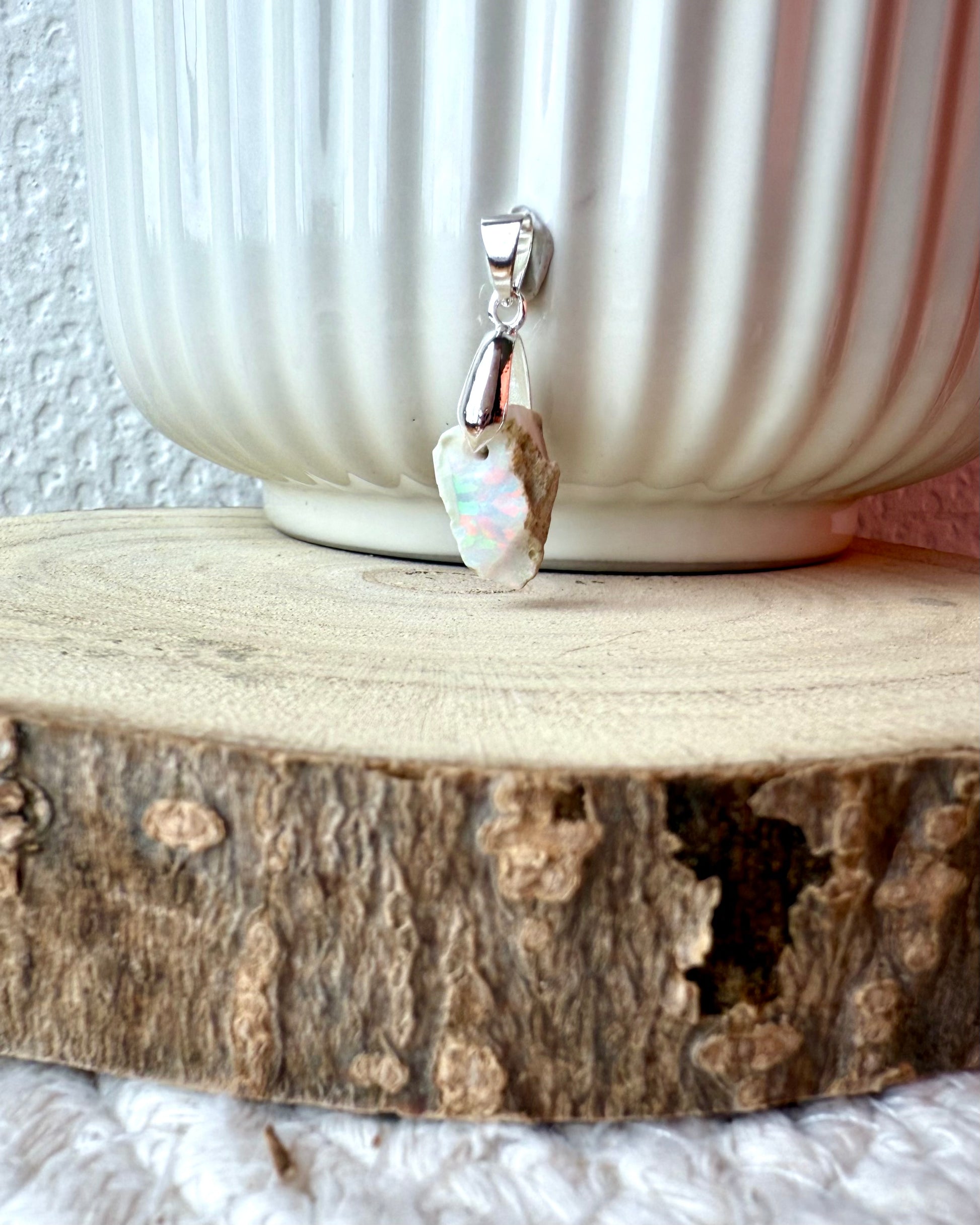 Pendentifs en pierres naturelles Opale welo brute et bélière acier inoxydable.