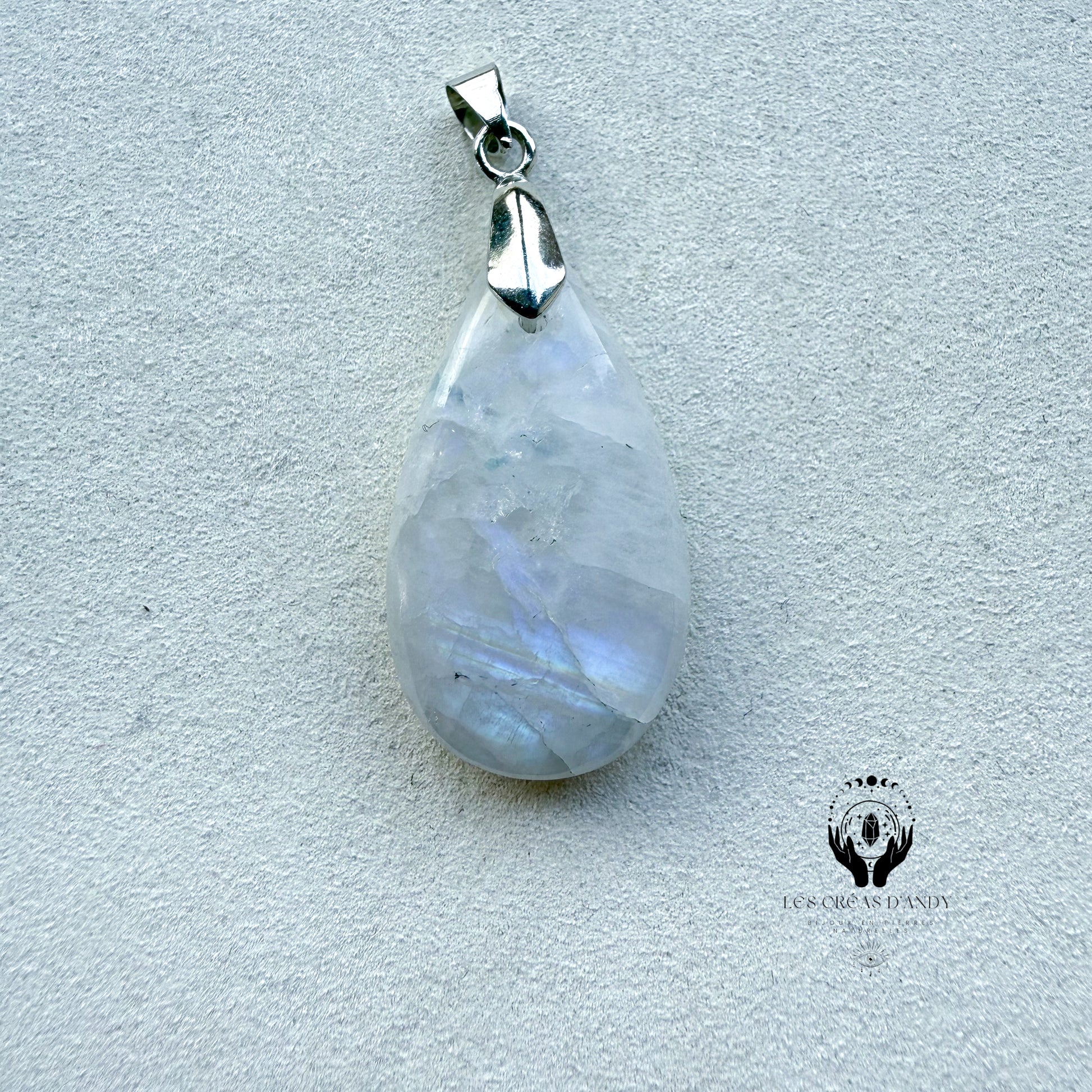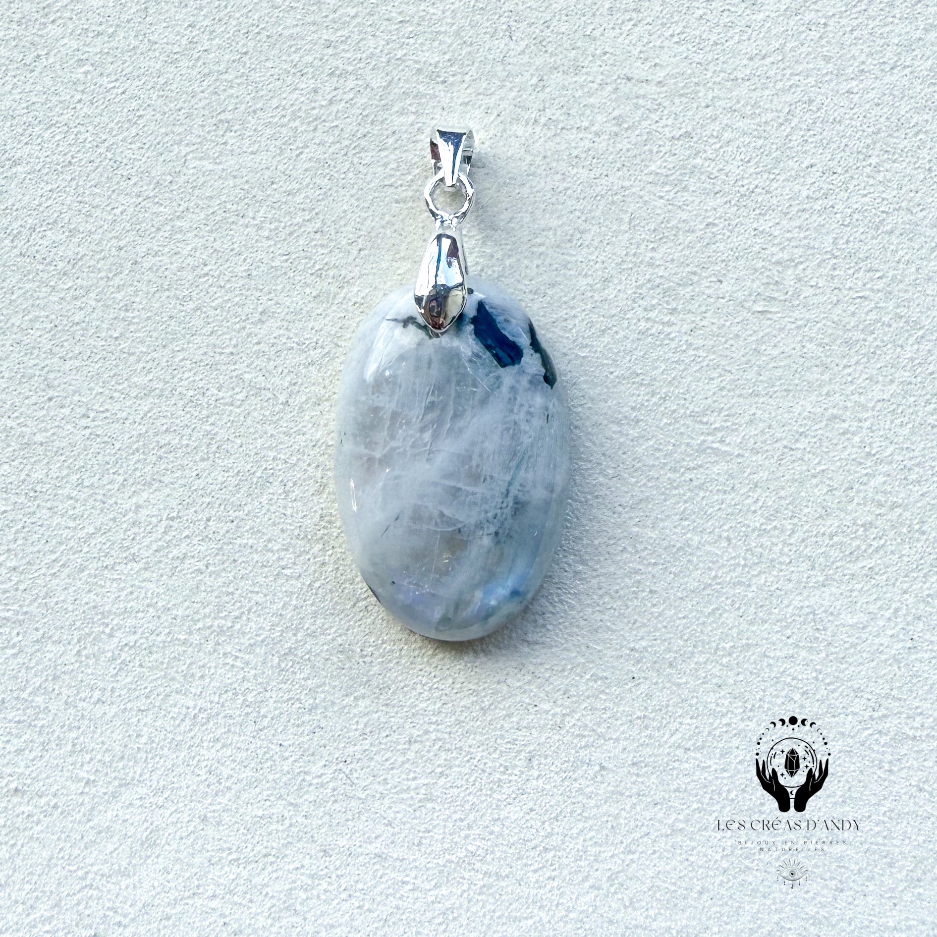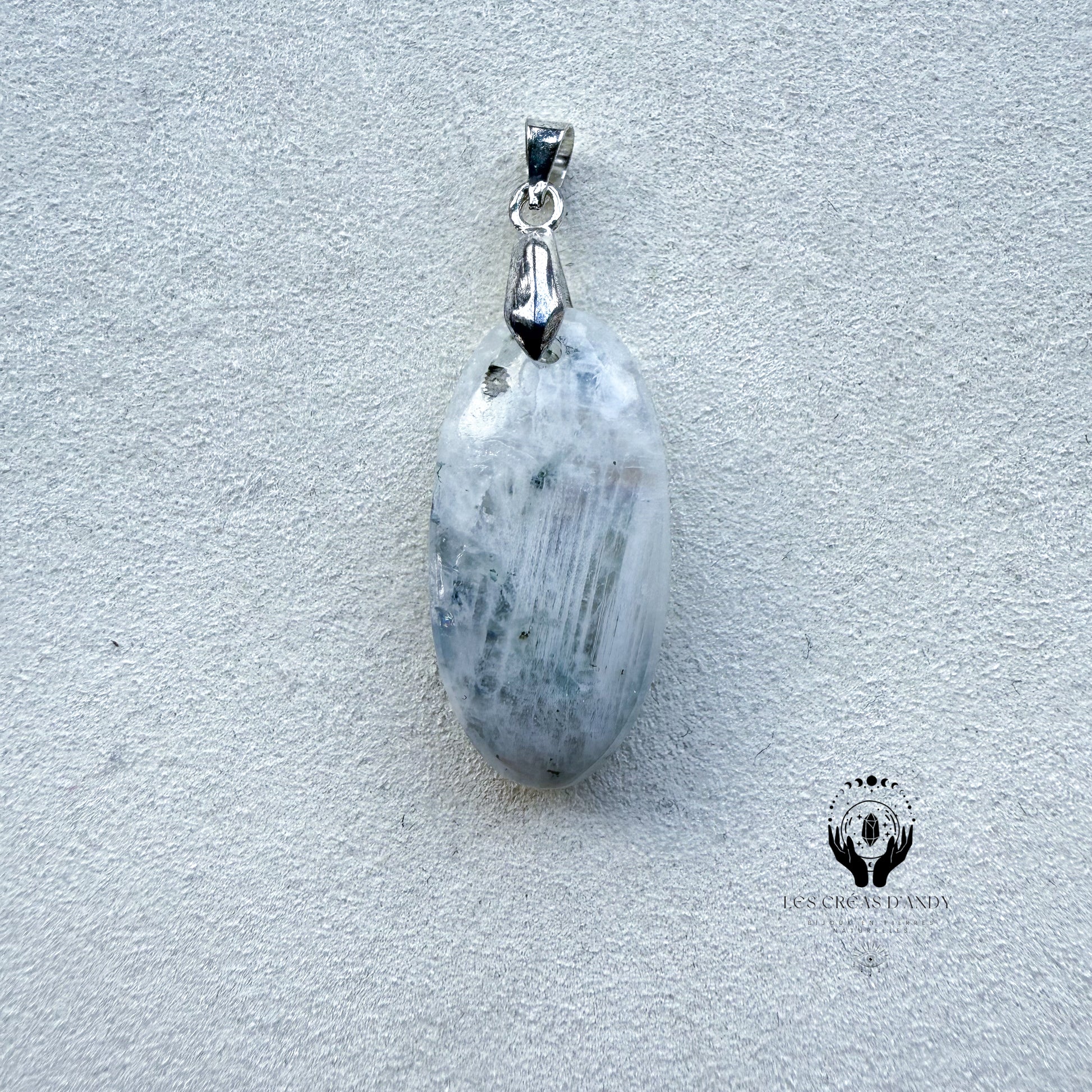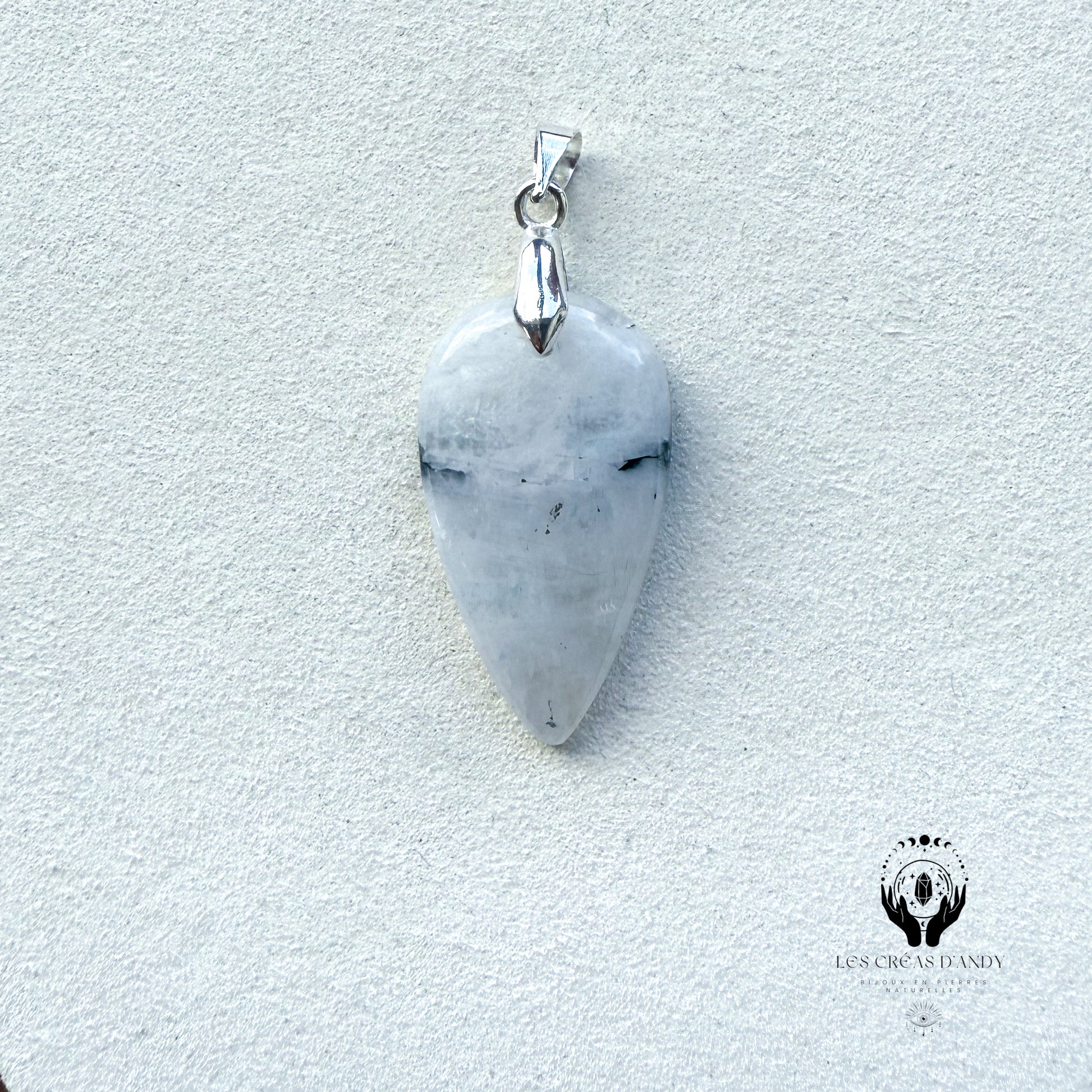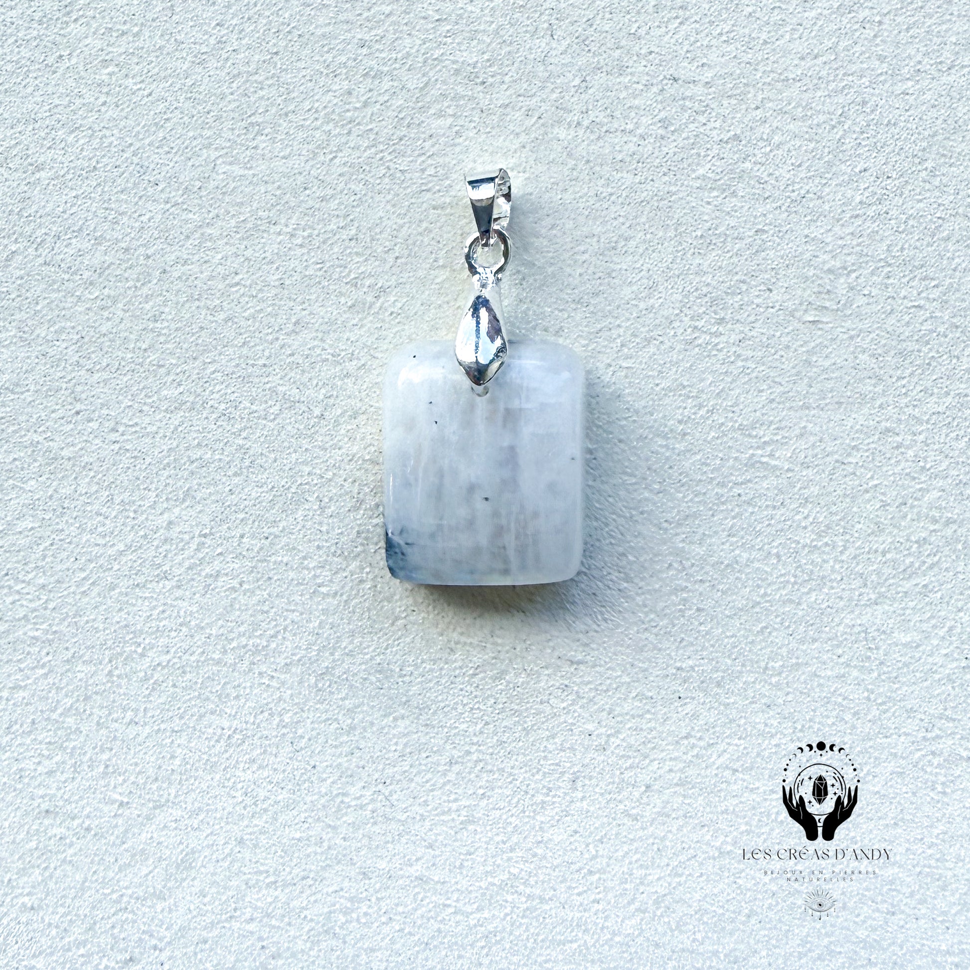 Pendentifs en pierres naturelles Peristerite et bélière acier inoxydable.