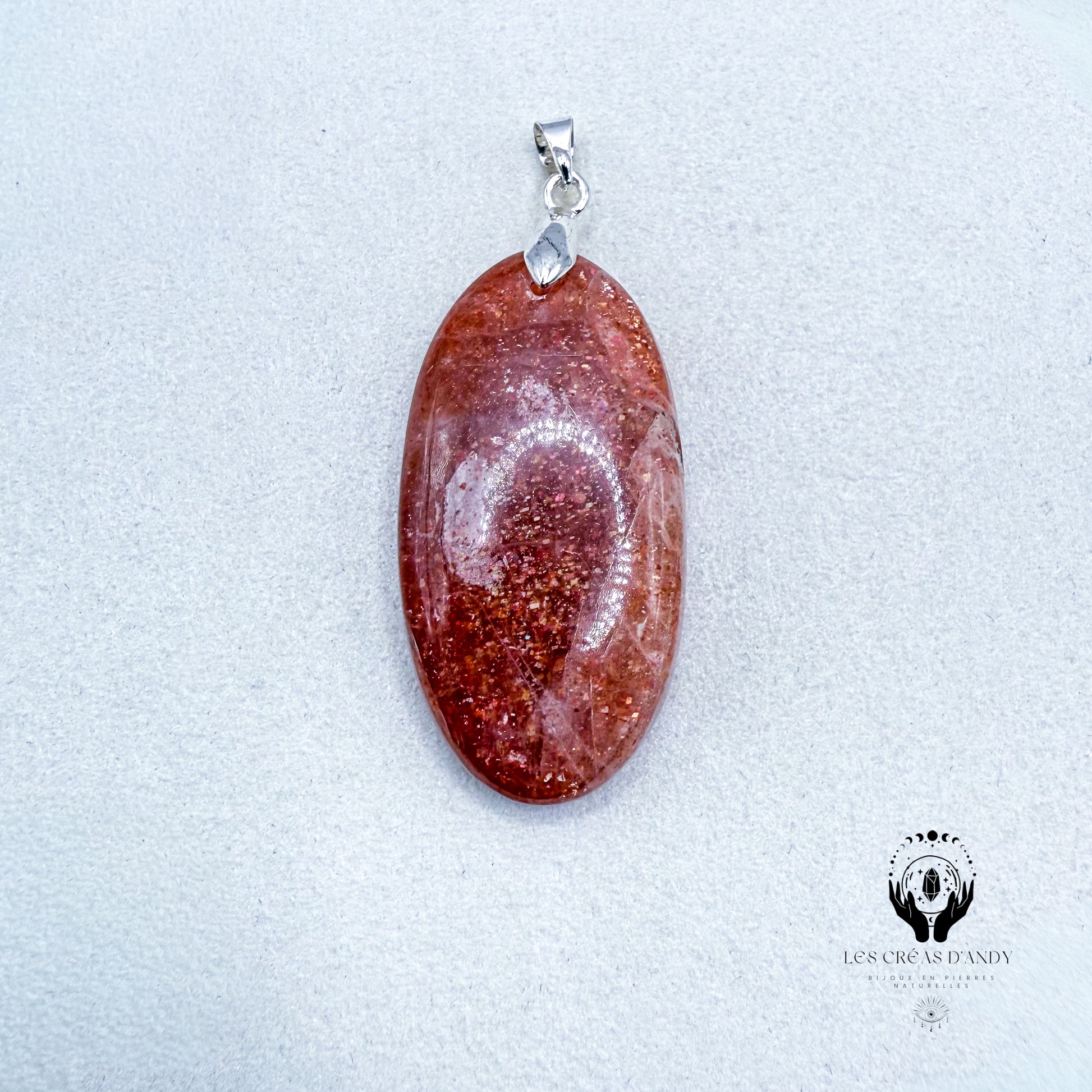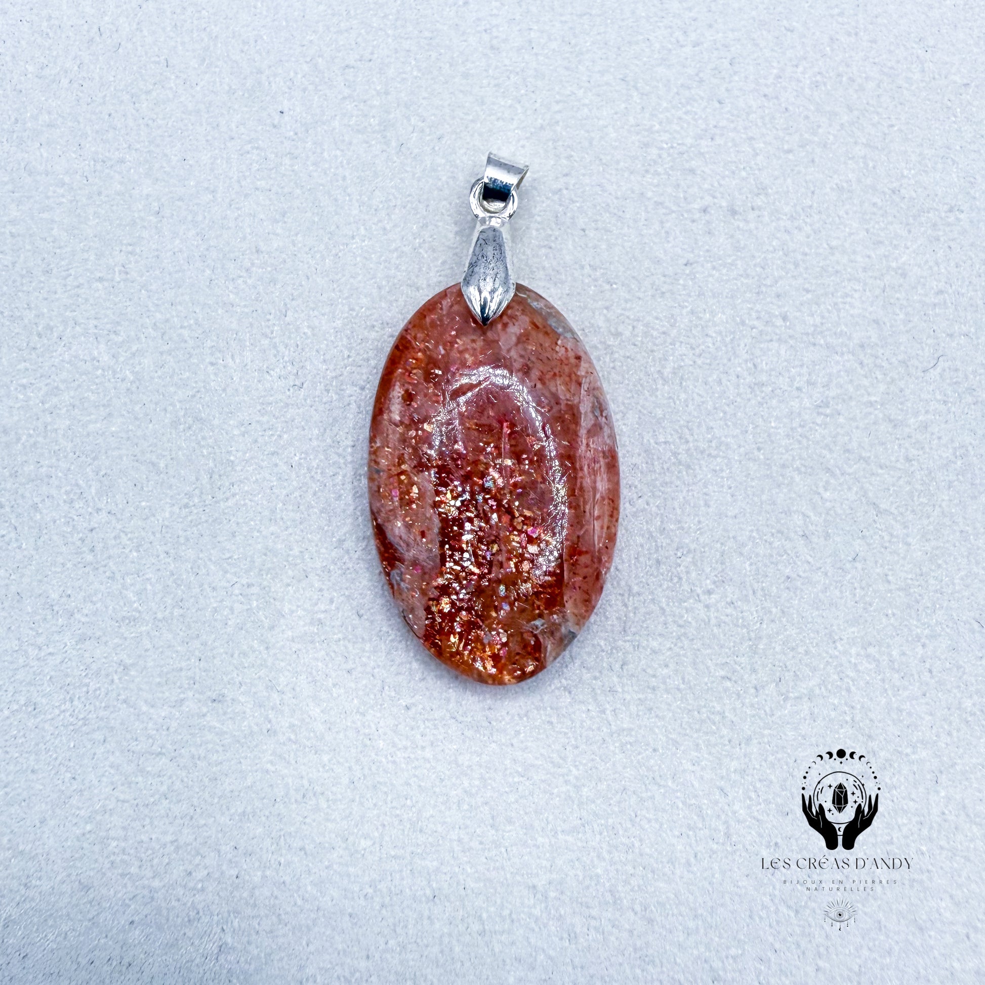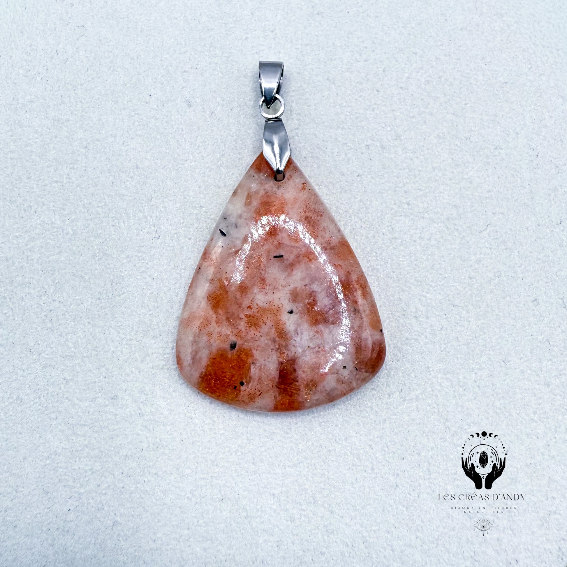 Pendentifs en pierres naturelles Pierre de soleil et bélière acier inoxydable.