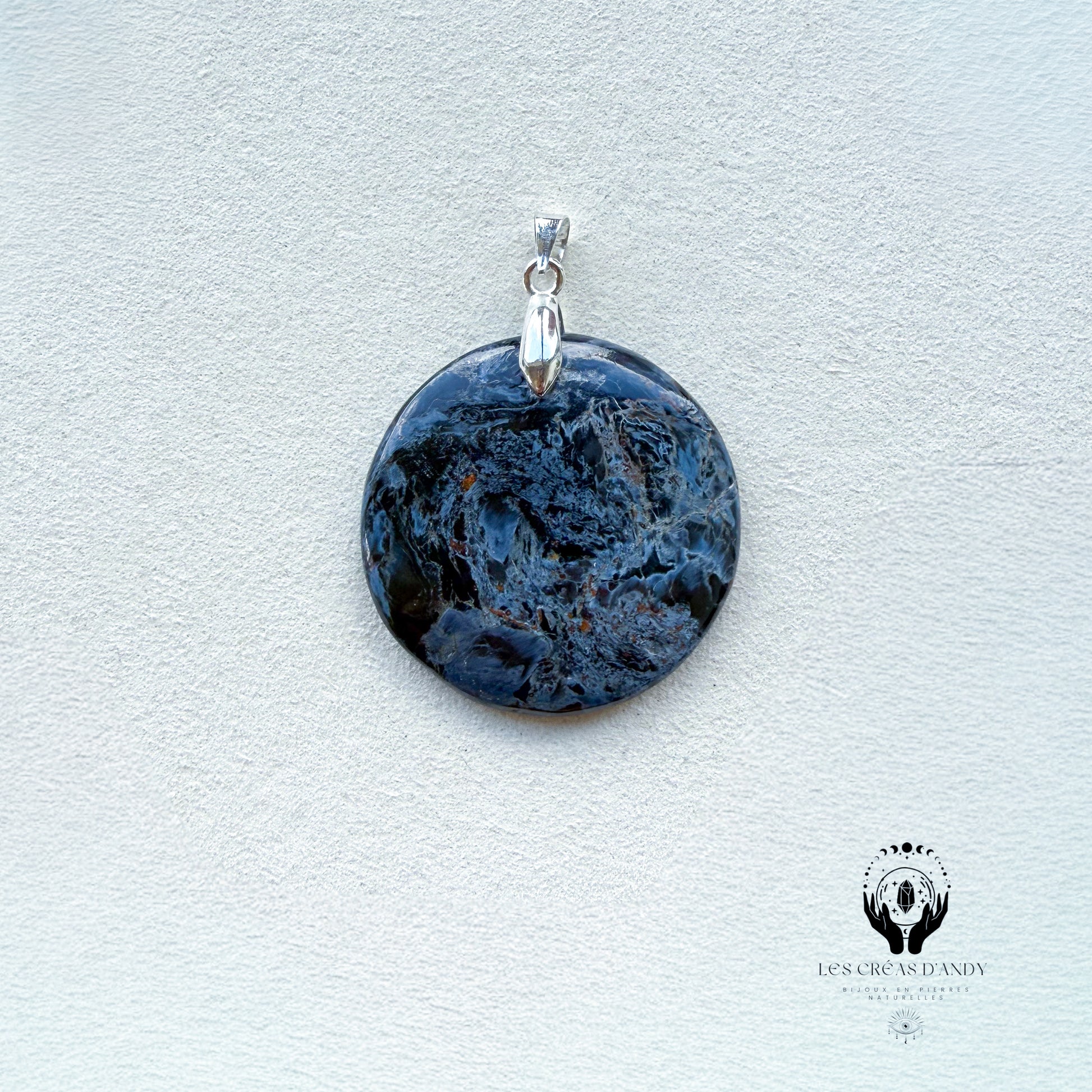 Pendentifs en pierres naturelles Pietersite et bélière acier inoxydable.