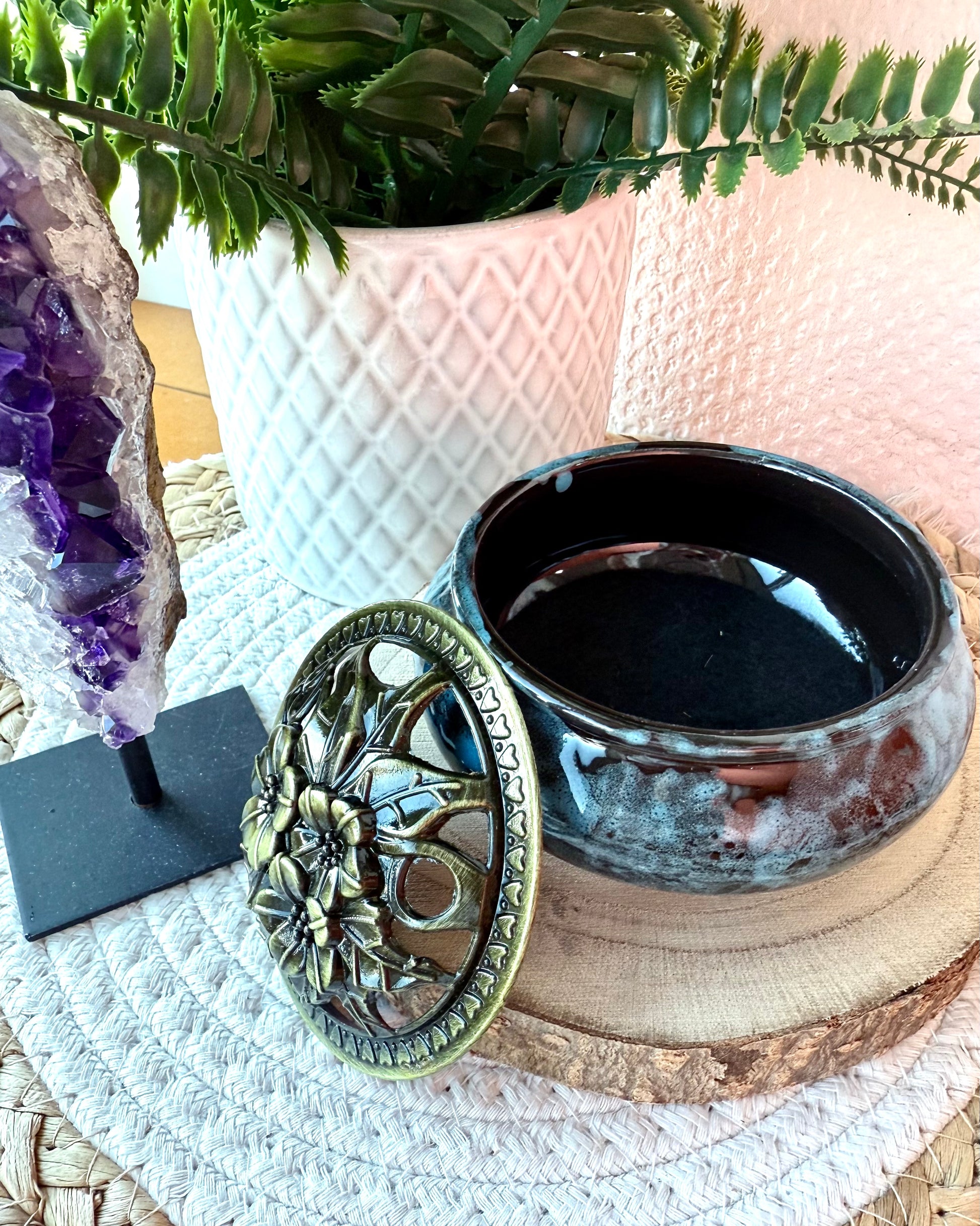 Ce porte-encens allie la détente visuelle et aromatique. L'encens monte en apesanteur, créant une atmosphère apaisante et mystique dans votre espace.