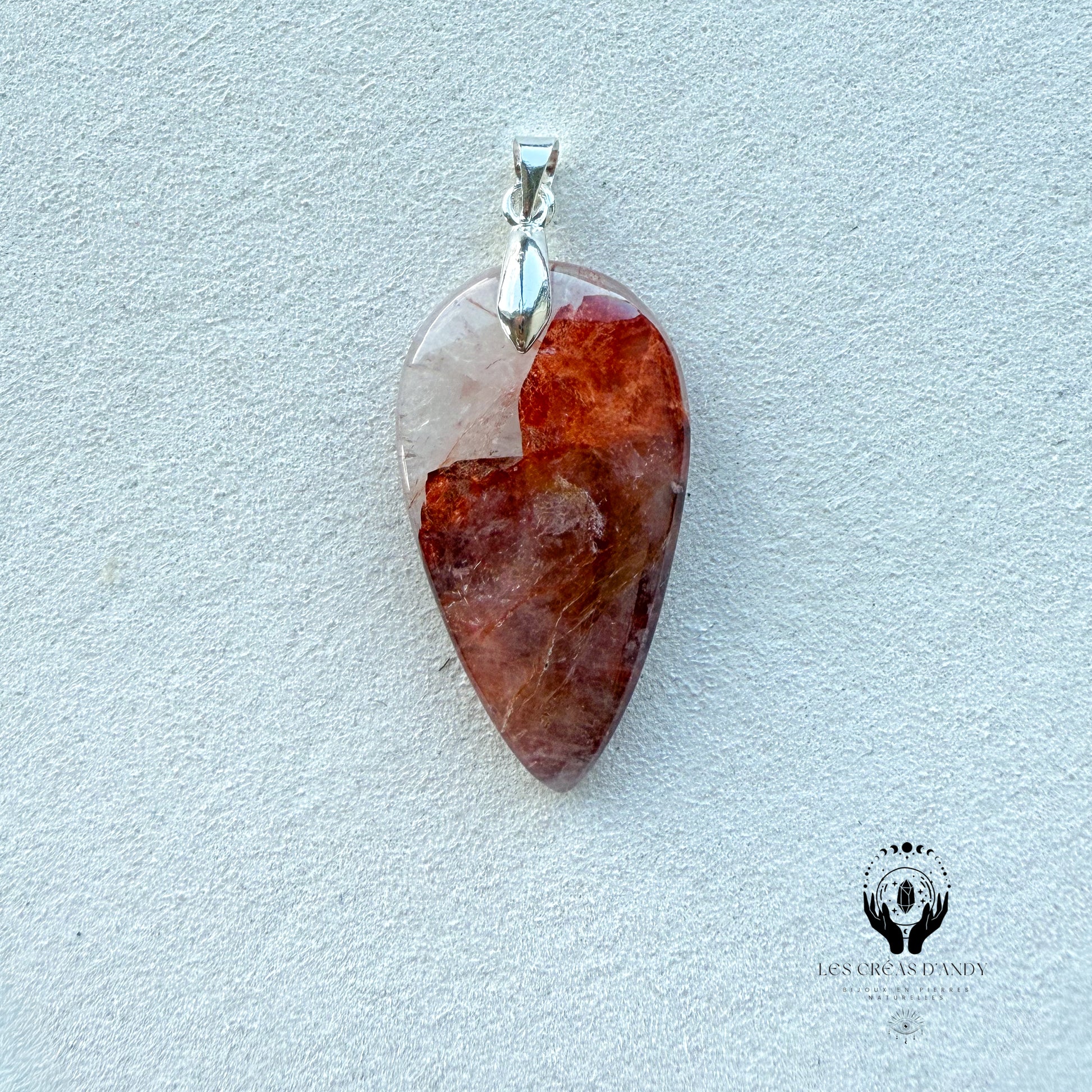 Pendentifs en pierres naturelles Quartz hematoïte et bélière acier inoxydable.