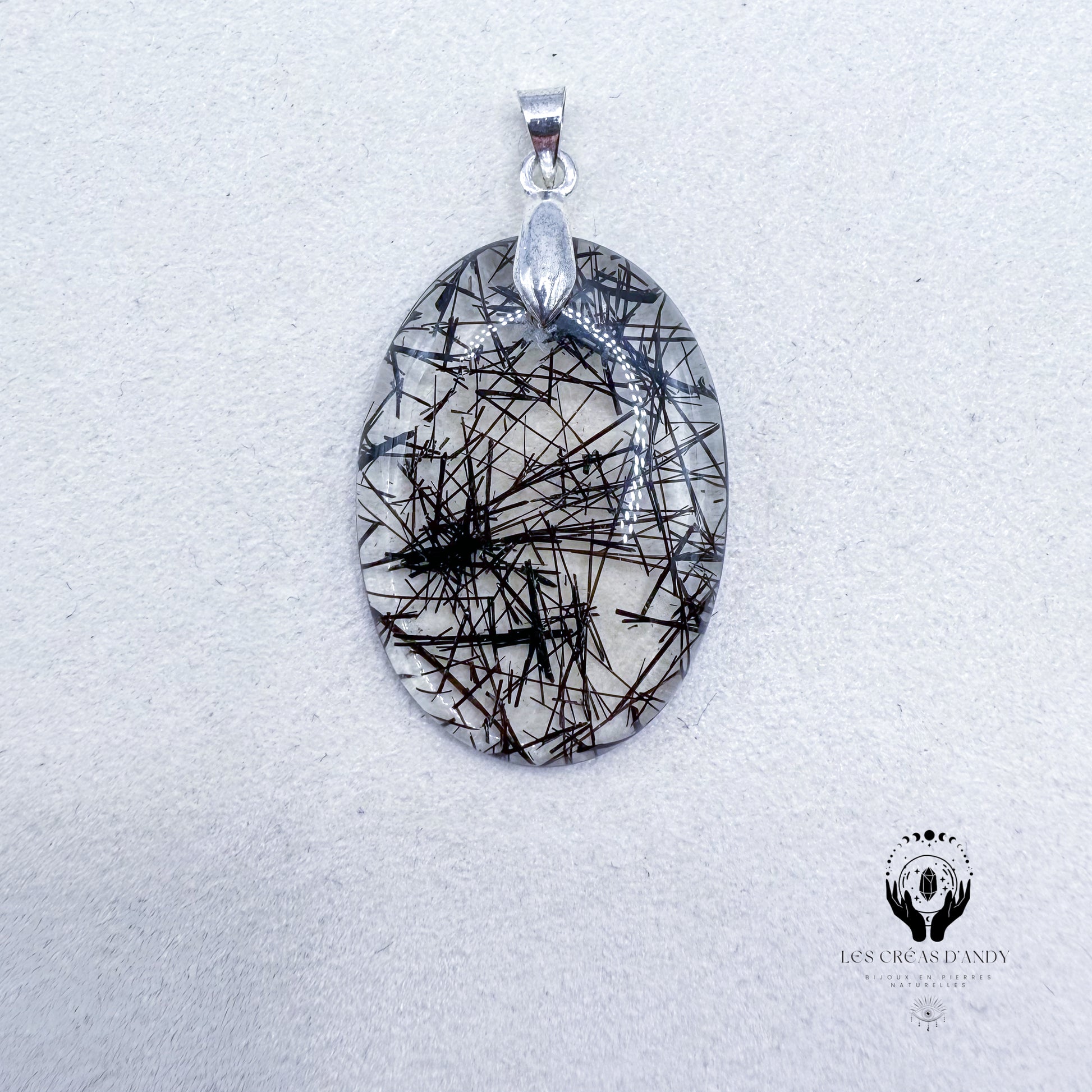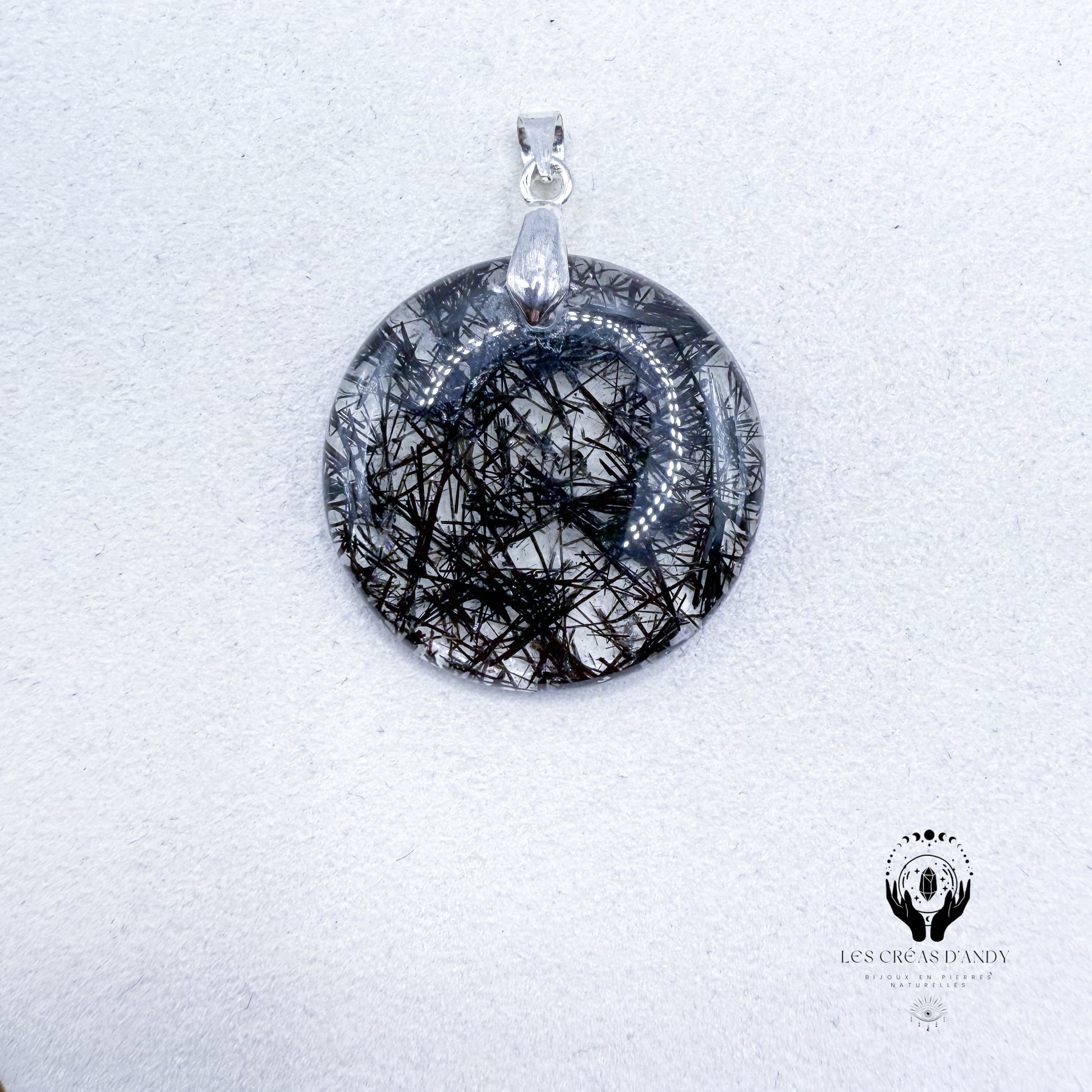 Pendentifs en pierres naturelles Quartz tourmaline et bélière acier inoxydable.