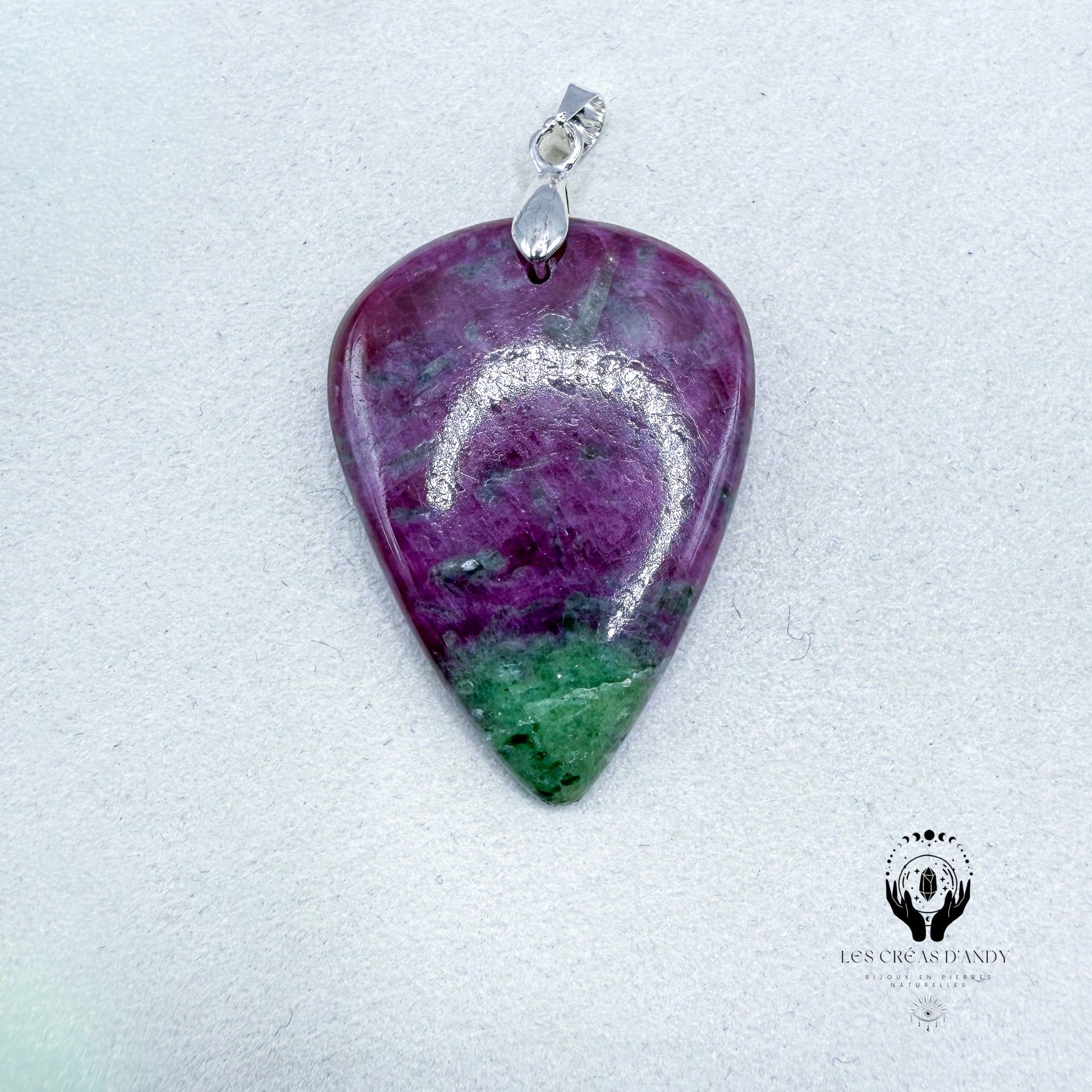 Pendentifs en pierres naturelles en Rubis zoisite et bélière acier inoxydable.