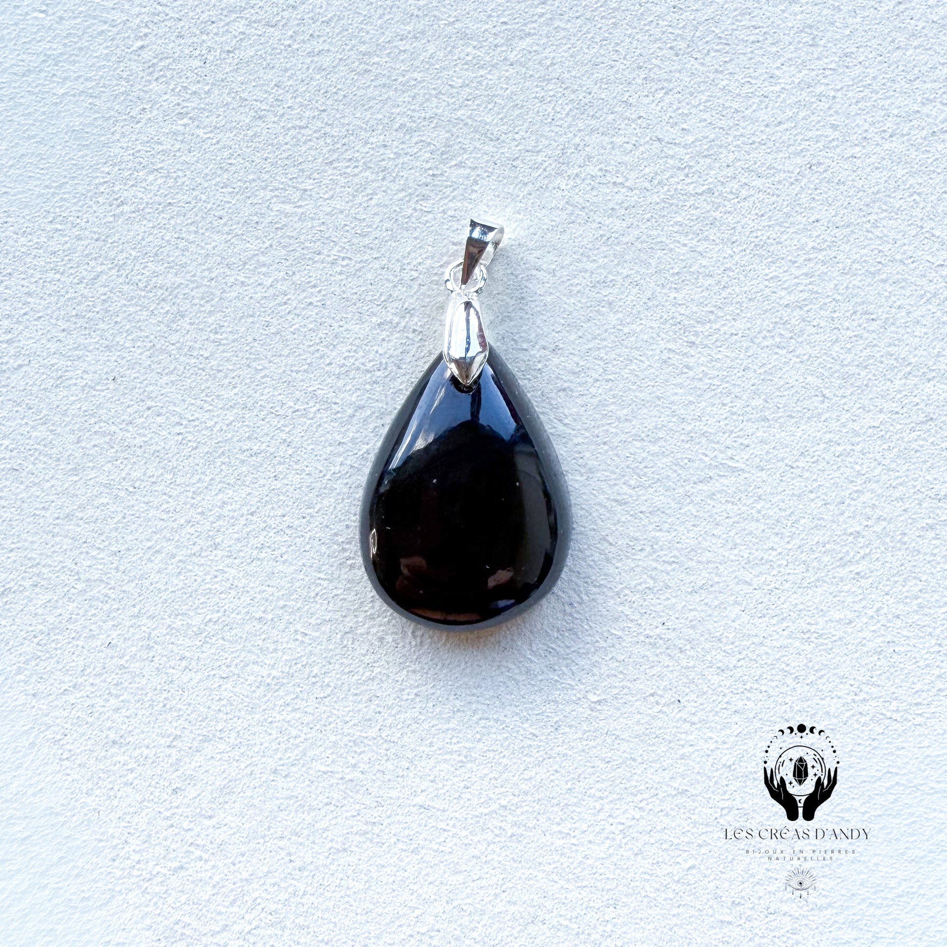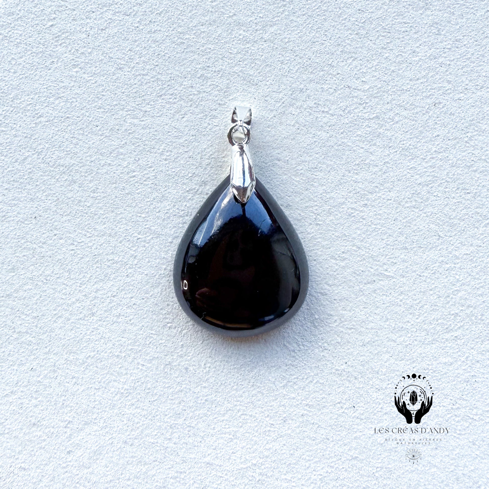 Pendentifs en pierres naturelles Spinelles noire et bélière acier inoxydable.